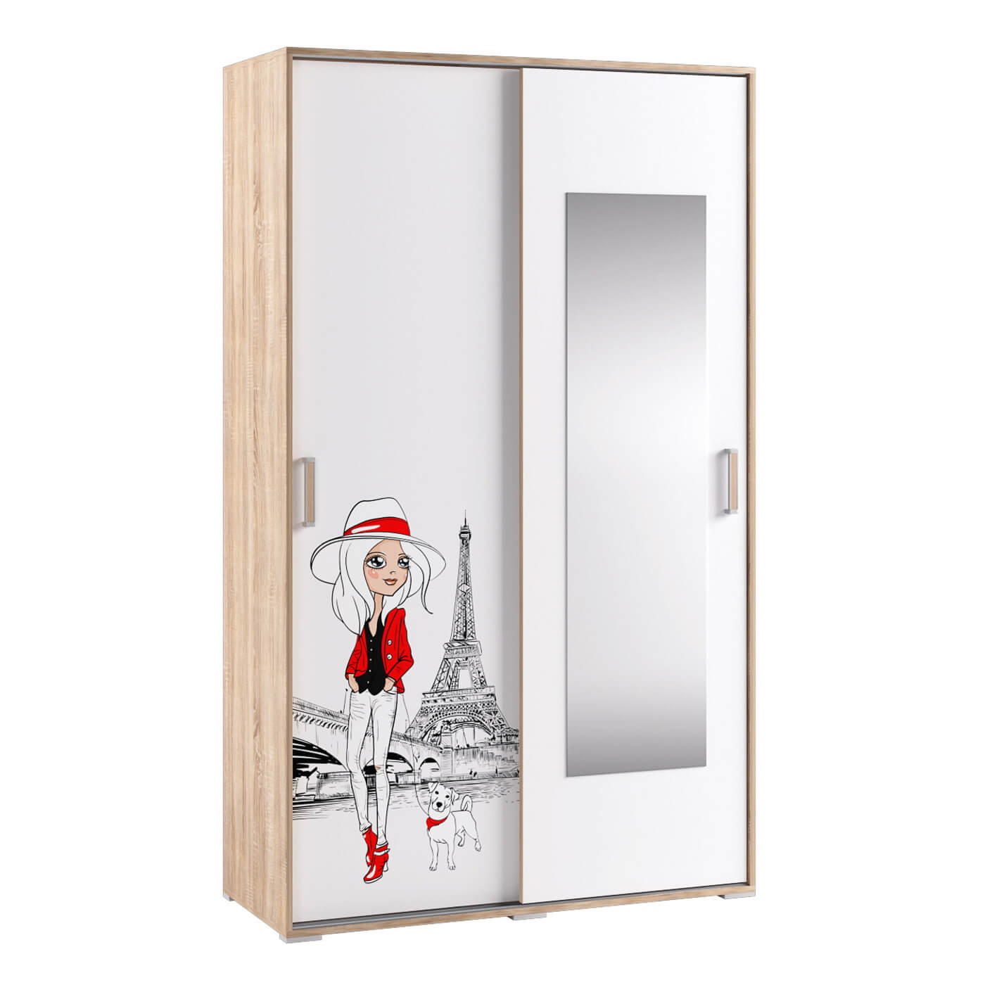 Спальня Бланка. Шкаф-купе дуб сонома/белый с фотопечатью
