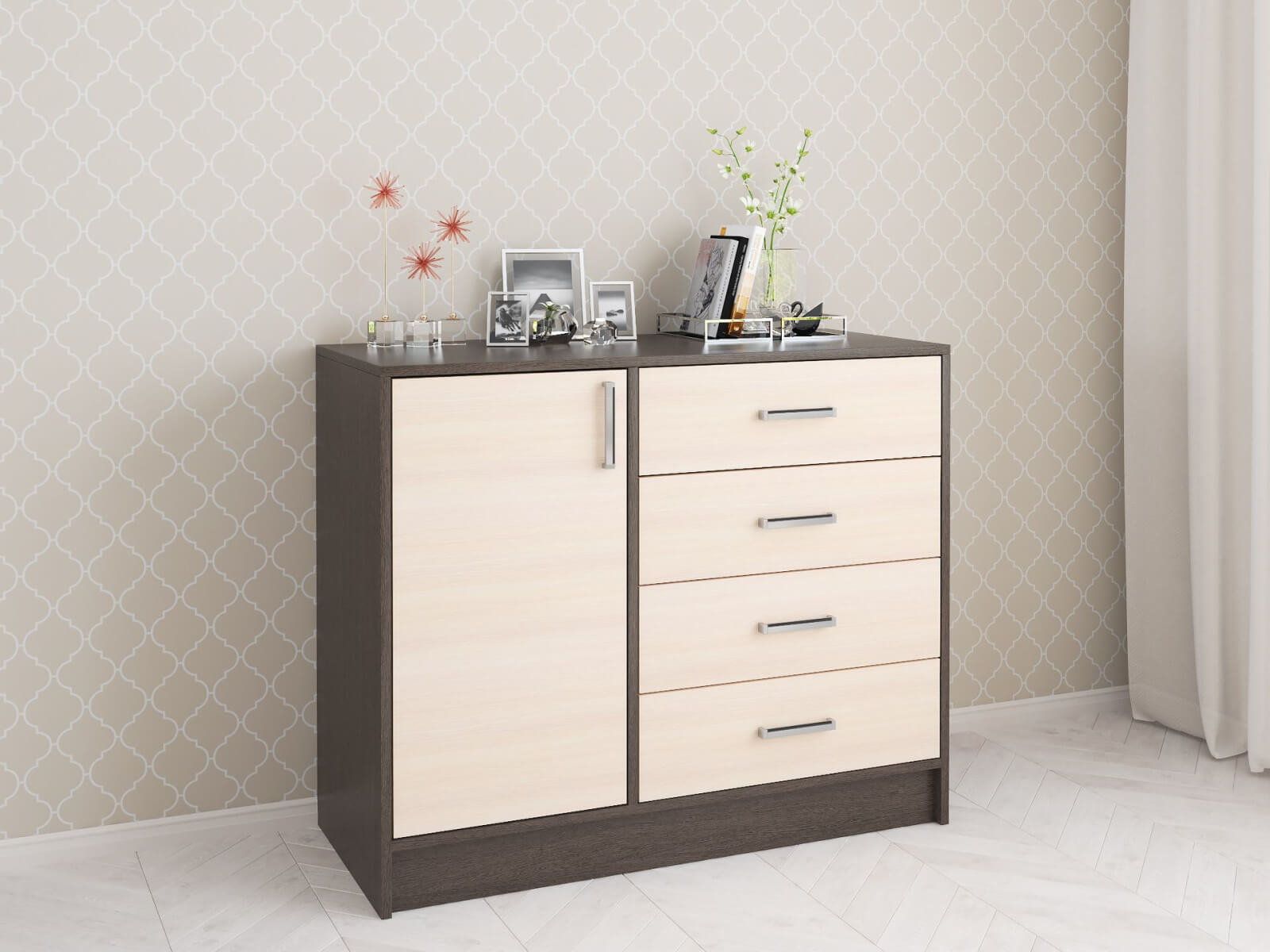 — Комод с двумя секциями: отделение с распашным фасадом и выдвижные ящики