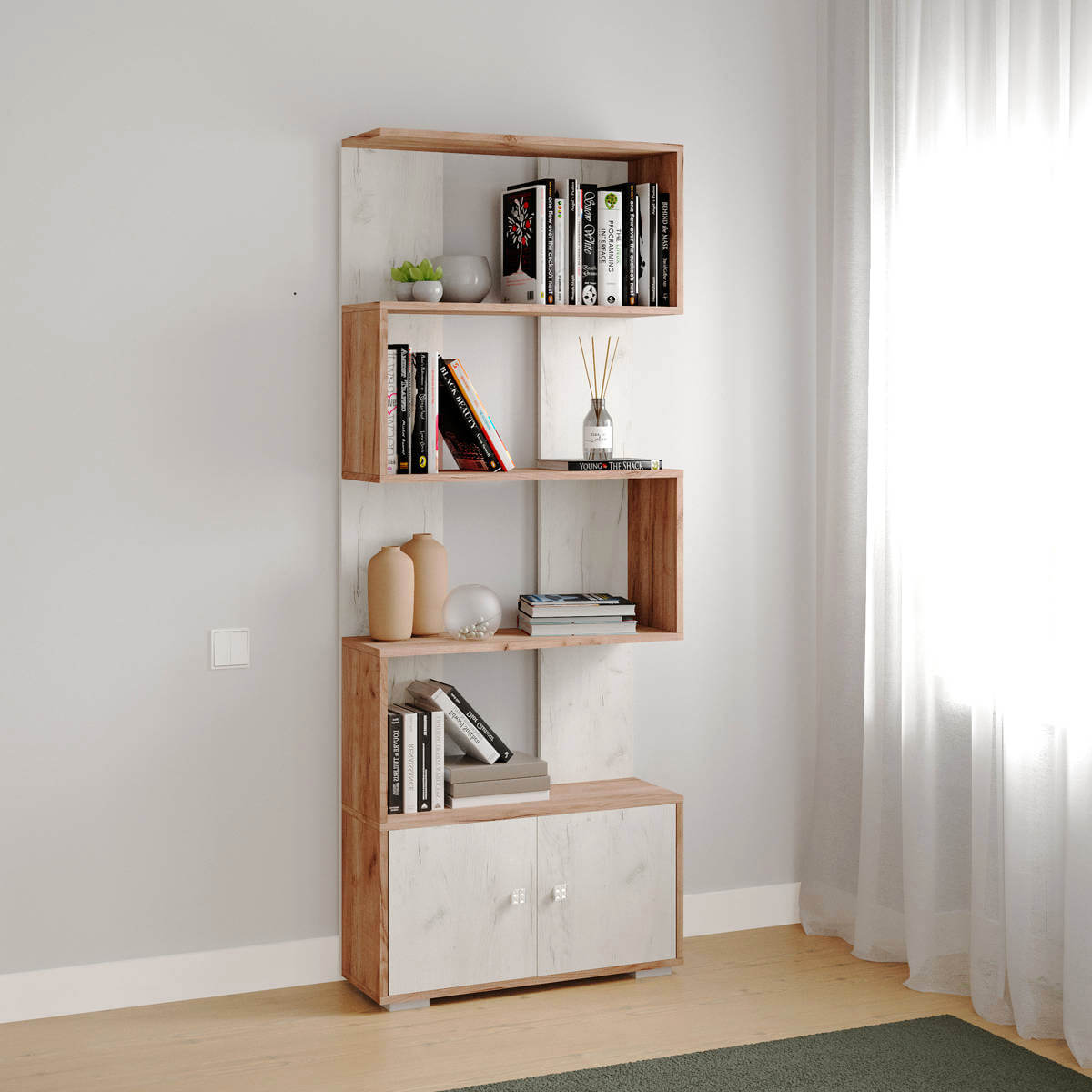 Стеллаж Ромео-2 дуб крафт табачный/дуб крафт белый