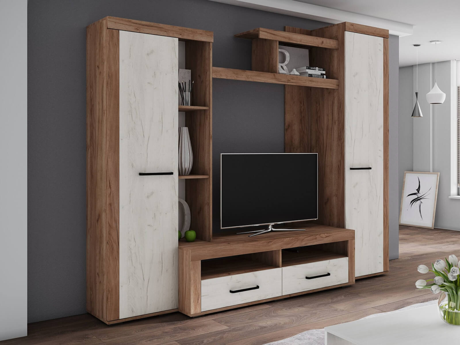 Гостиная Марсель-4 дуб крафт табачный/дуб крафт белый