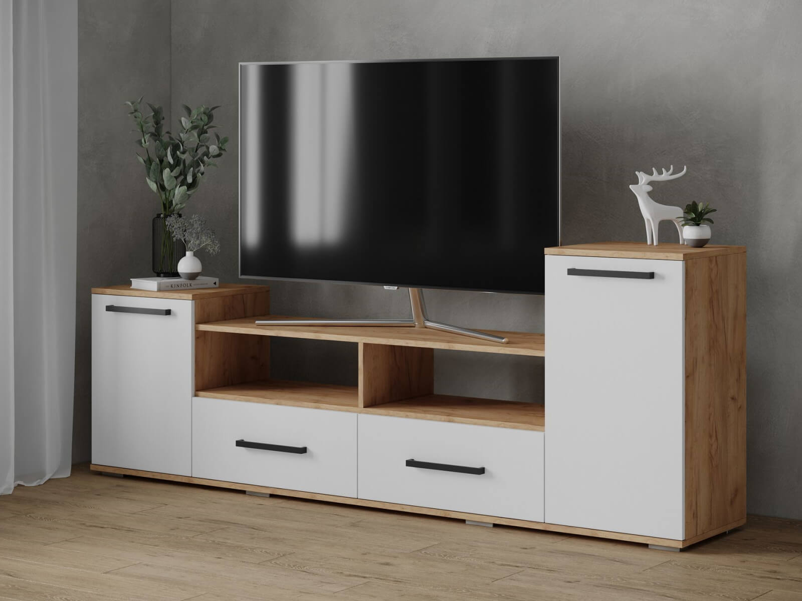 Тумба ТВ Парус-2 дуб крафт золотой/белый