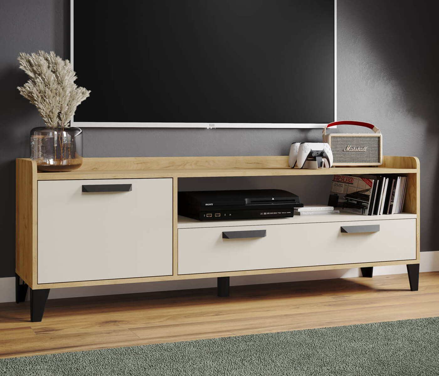 Тумба ТВ Парус-8 дуб крафт золотой/кашемир
