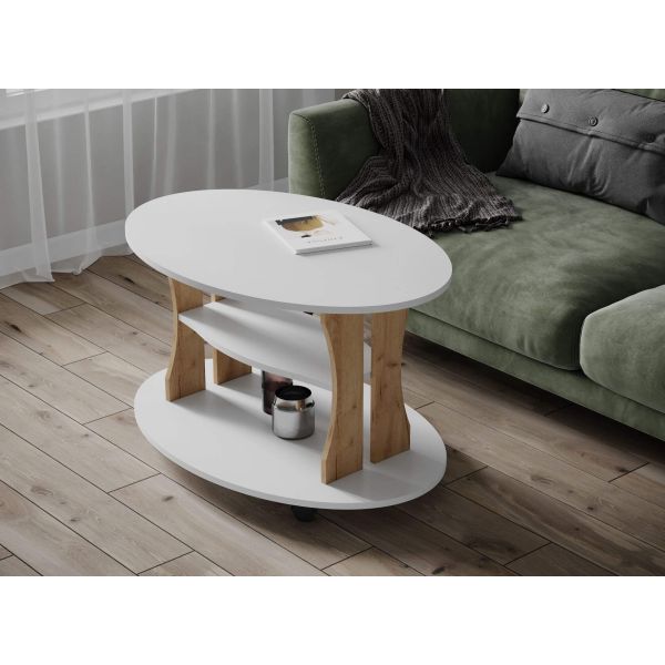 Журнальный стол Консул-1 белый/дуб крафт золотой